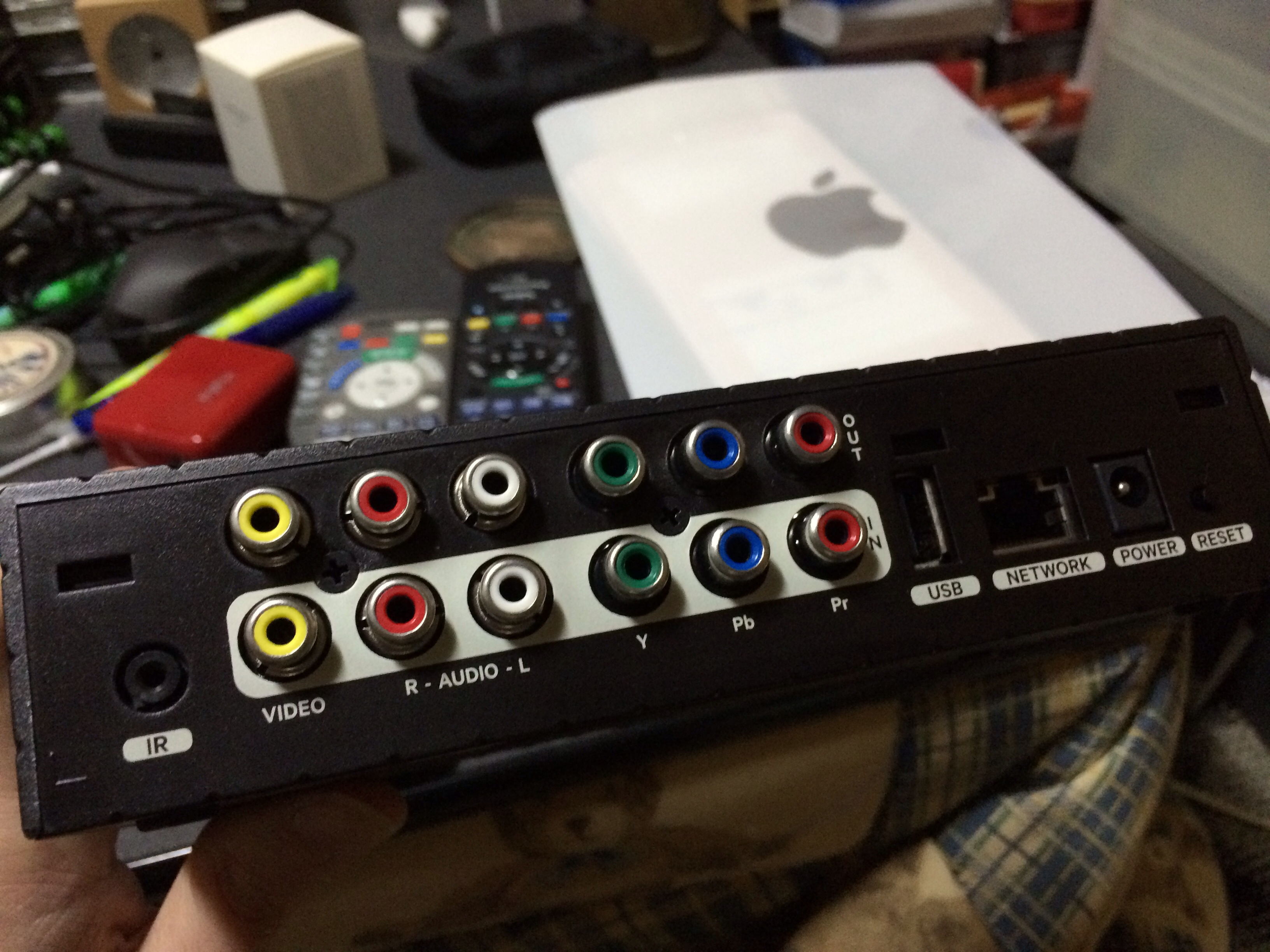 本体と各種ケーブルです。 本体は18cmx10cmほどなのでそれほど大きくなく場所もとりません。 付属ケーブルはステレオ、ビデオ、D端子、LANケーブル、電源アダプターとなっております。 接続するためのケーブルは付属しておりますね。