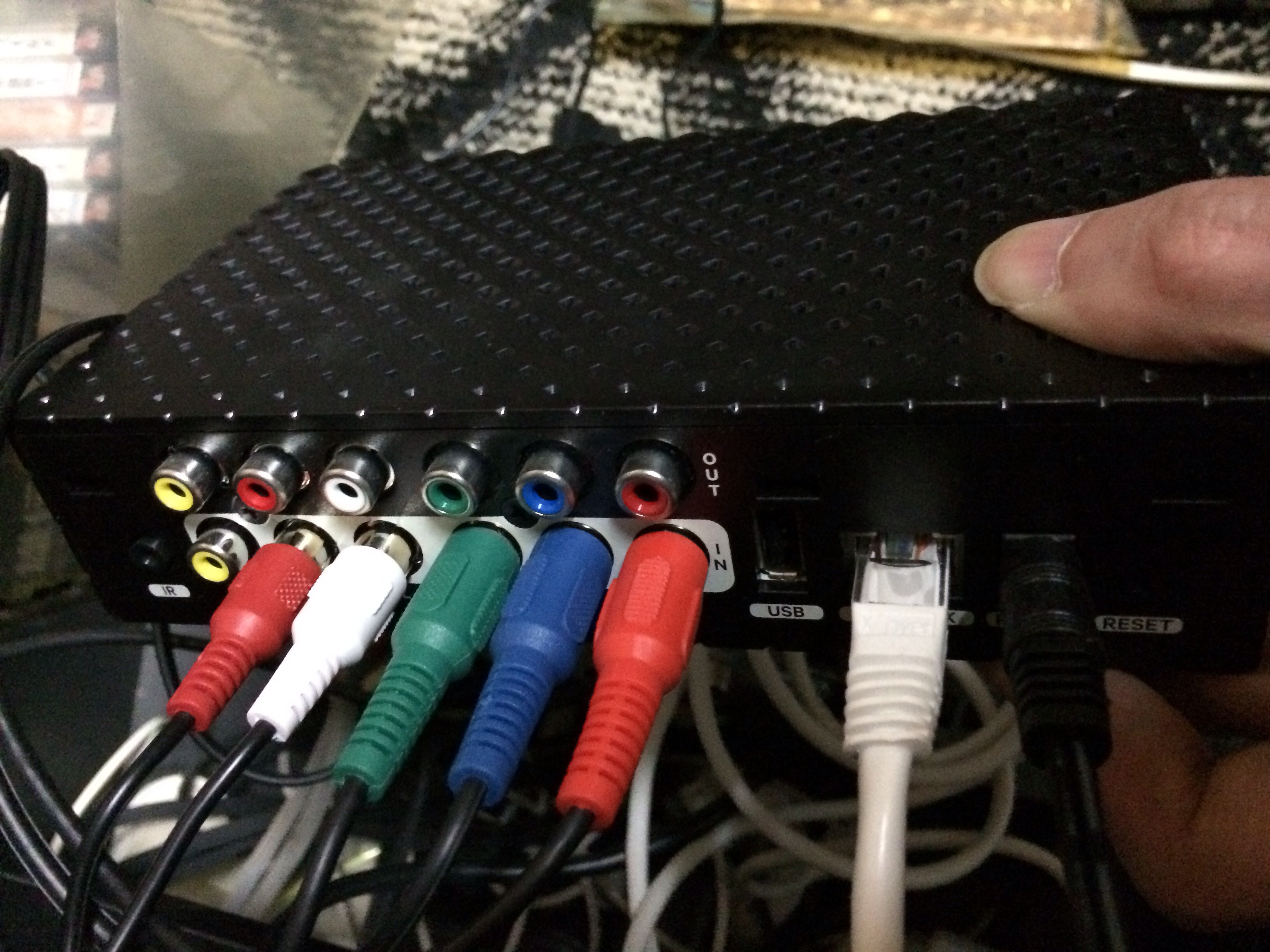 SLINGBOX本体にケーブルを挿し込んだら、ケーブルの反対側をレコーダーの出力の方へ挿し込んで、アダプターを付ければ準備OK!!(^o^)