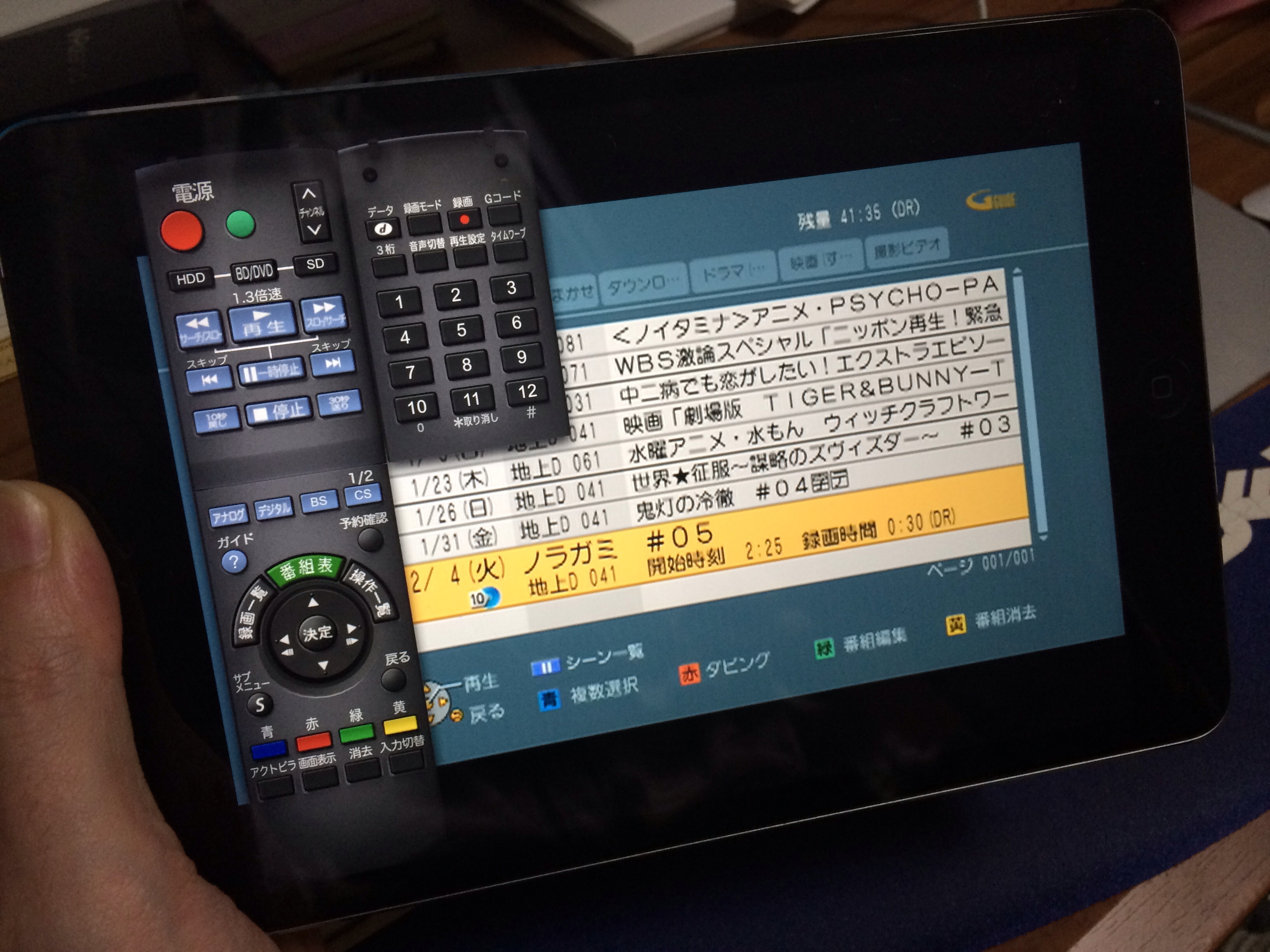 iPadでは、こんな感じになります。 リモコンで操作して録画一覧から番組を選ぶと、その番組が見れますよ〜