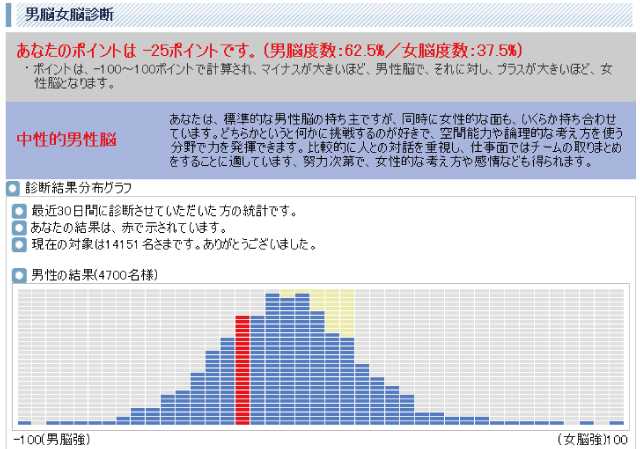 【診断】男性的な脳か女性的な脳か診断できるサイト「男脳女脳診断」